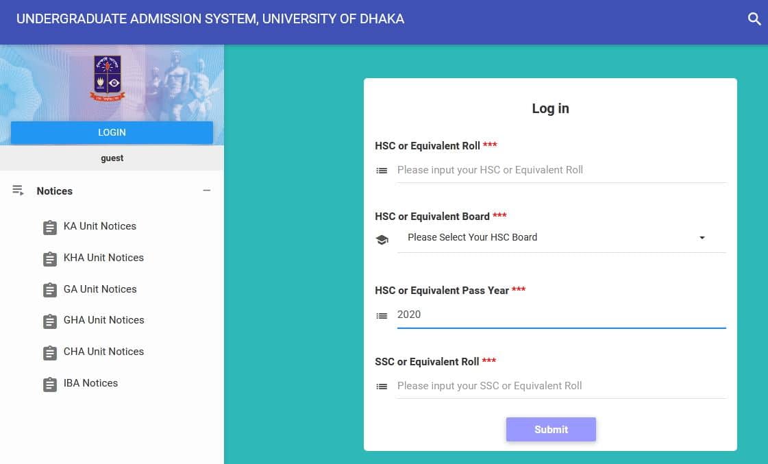 If you need to verify your admission outcomes for any of the items of A (Ka) Unit, B (Kha) Unit, C (Ga) Unit, D (Gha) Unit, E (Cha) Unit, you may verify that by visiting the official web site of Dhaka University admission.eis.du.ac.bd.